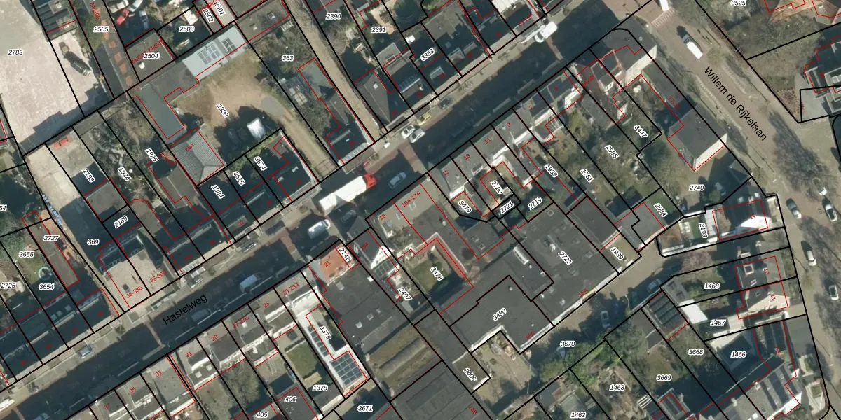 Hastelweg 17 is gelegen op kadastraal perceel STR03D3478. Deze kadastrale aanduiding is uniek en wordt gebruikt door het Kadaster om eigendomsrechten en andere zakelijke rechten vast te leggen. Het perceel maakt onderdeel uit van de kadastrale gemeente Strijp.