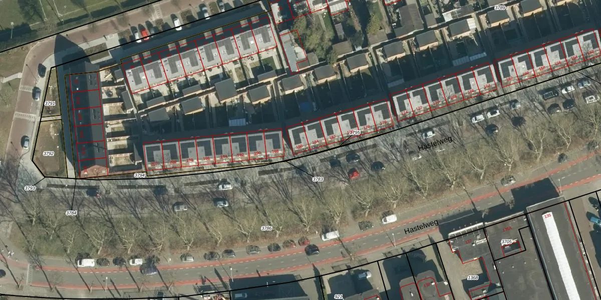 Hastelweg 186 is gelegen op kadastraal perceel STR03D3789. Deze kadastrale aanduiding is uniek en wordt gebruikt door het Kadaster om eigendomsrechten en andere zakelijke rechten vast te leggen. Het perceel maakt onderdeel uit van de kadastrale gemeente Strijp.