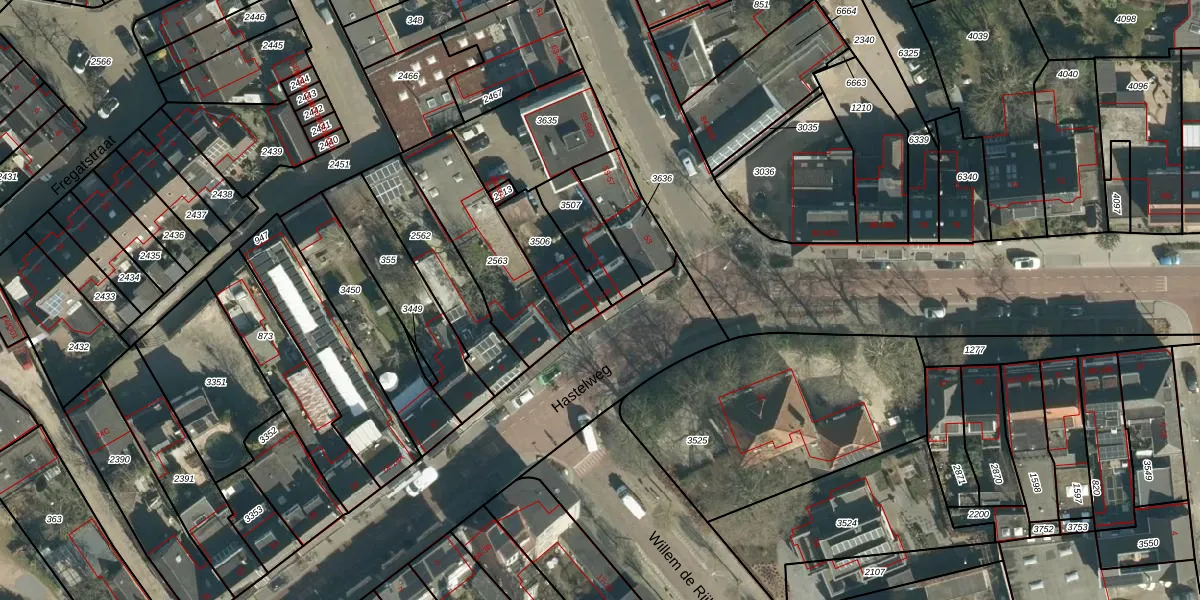 Hastelweg 2 is gelegen op kadastraal perceel STR03D3506. Deze kadastrale aanduiding is uniek en wordt gebruikt door het Kadaster om eigendomsrechten en andere zakelijke rechten vast te leggen. Het perceel maakt onderdeel uit van de kadastrale gemeente Strijp.