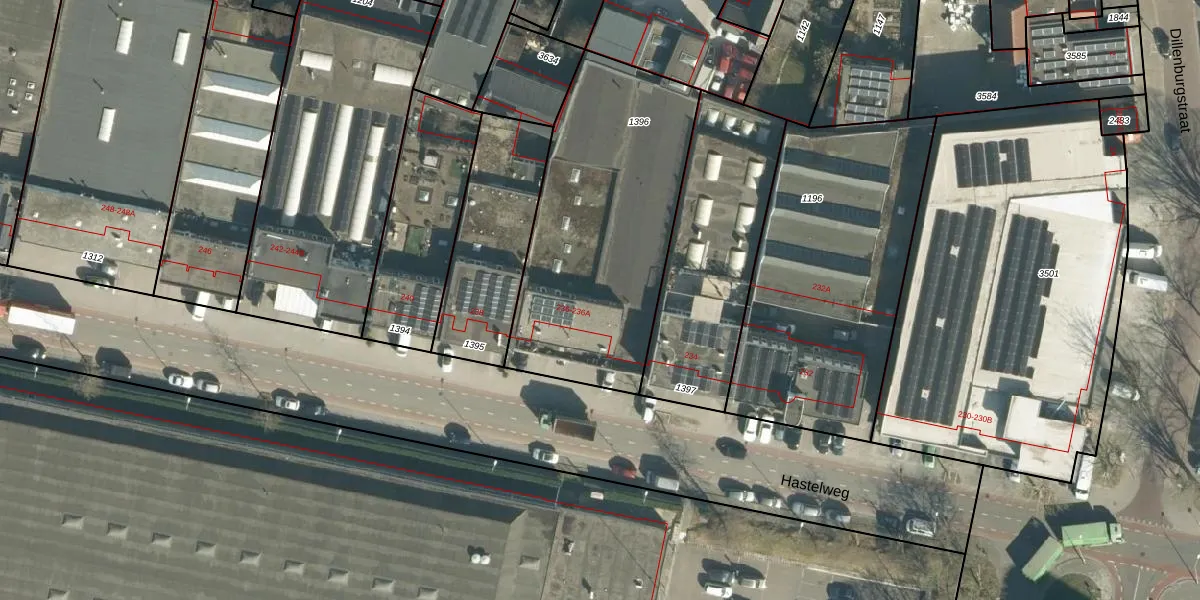 Hastelweg 236 is gelegen op kadastraal perceel STR03D1396. Deze kadastrale aanduiding is uniek en wordt gebruikt door het Kadaster om eigendomsrechten en andere zakelijke rechten vast te leggen. Het perceel maakt onderdeel uit van de kadastrale gemeente Strijp.
