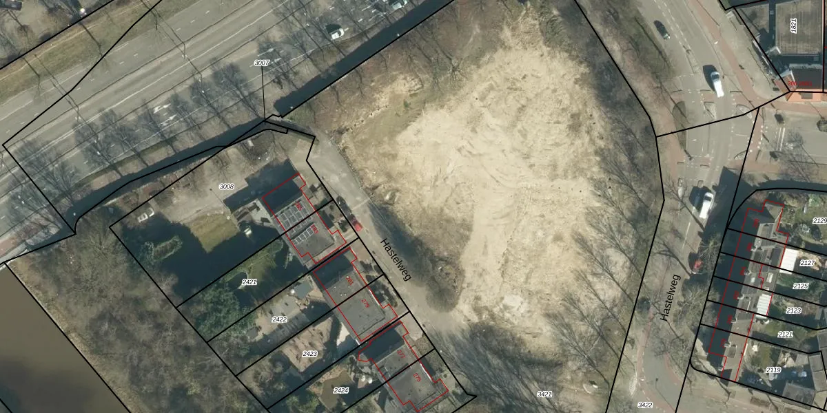 Het perceel waarop Hastelweg 321 staat heeft een oppervlakte van 8516 m². Dit is een zeer groot perceel. De perceeloppervlakte wordt geregistreerd door het Kadaster. Gedetailleerde informatie over de maten van dit perceel kunt u vinden in het rapport Kadastrale kaart met maatvoering van Hastelweg 321.