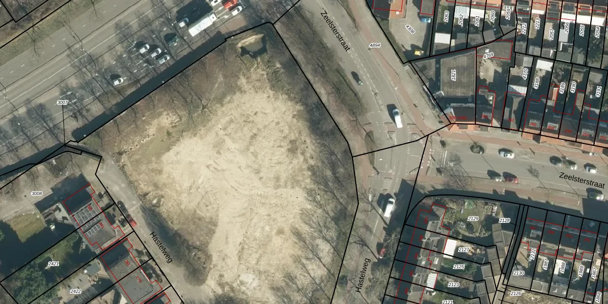 Het perceel waarop Hastelweg 335 staat heeft een oppervlakte van 8516 m². Dit is een zeer groot perceel. De perceeloppervlakte wordt geregistreerd door het Kadaster. Gedetailleerde informatie over de maten van dit perceel kunt u vinden in het rapport Kadastrale kaart met maatvoering van Hastelweg 335.