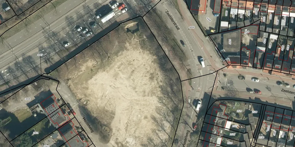 Hastelweg 367 is gelegen op kadastraal perceel STR03D3421. Deze kadastrale aanduiding is uniek en wordt gebruikt door het Kadaster om eigendomsrechten en andere zakelijke rechten vast te leggen. Het perceel maakt onderdeel uit van de kadastrale gemeente Strijp.