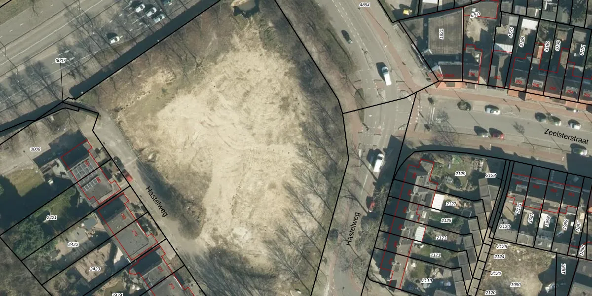 Het perceel waarop Hastelweg 375 staat heeft een oppervlakte van 8516 m². Dit is een zeer groot perceel. De perceeloppervlakte wordt geregistreerd door het Kadaster. Gedetailleerde informatie over de maten van dit perceel kunt u vinden in het rapport Kadastrale kaart met maatvoering van Hastelweg 375.