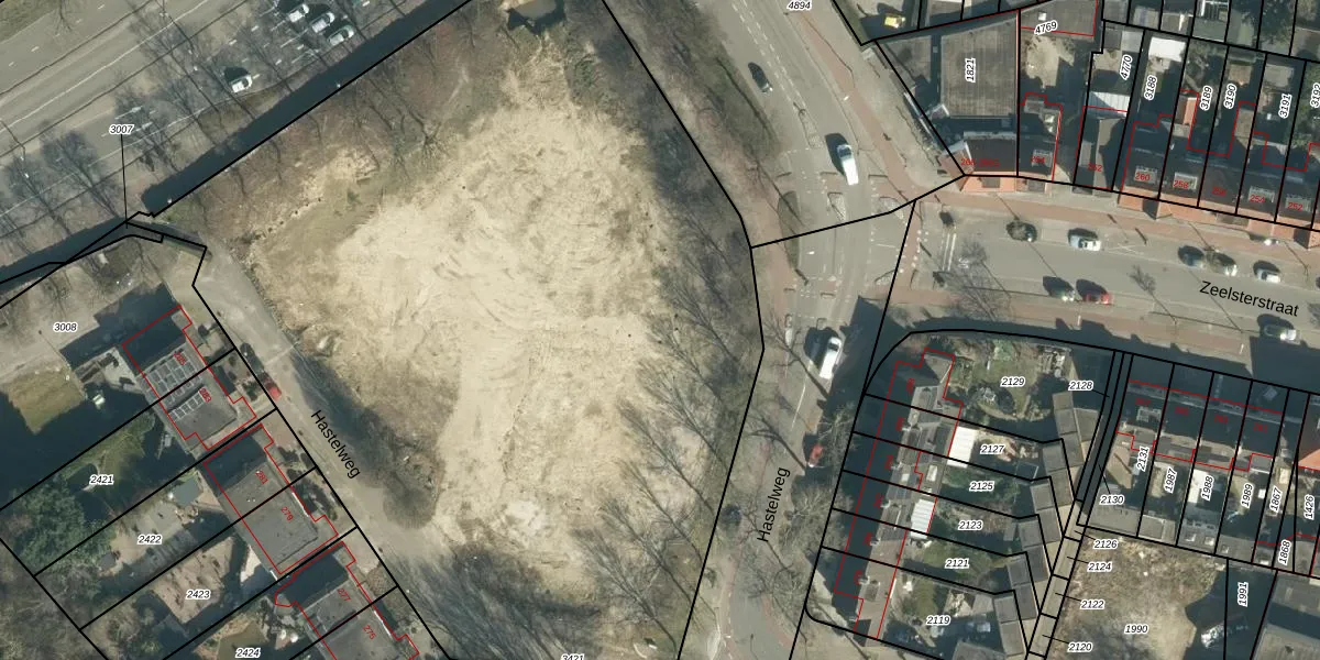 Het perceel waarop Hastelweg 409 staat heeft een oppervlakte van 8516 m². Dit is een zeer groot perceel. De perceeloppervlakte wordt geregistreerd door het Kadaster. Gedetailleerde informatie over de maten van dit perceel kunt u vinden in het rapport Kadastrale kaart met maatvoering van Hastelweg 409.