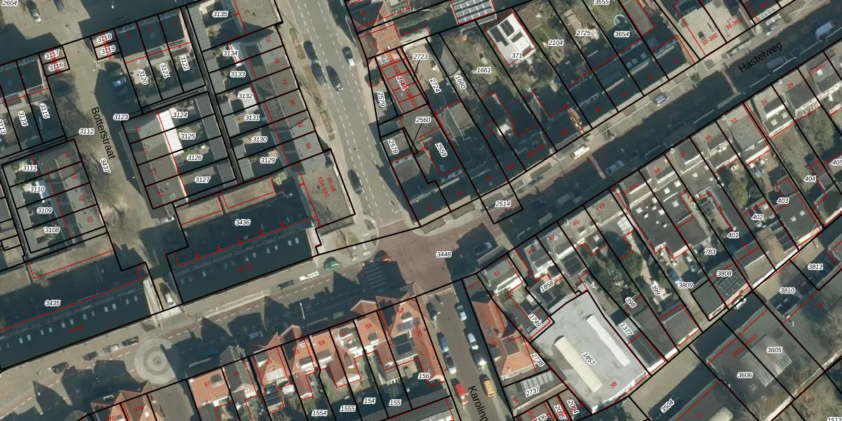 Hastelweg 52 is gelegen op kadastraal perceel STR03D2578. Deze kadastrale aanduiding is uniek en wordt gebruikt door het Kadaster om eigendomsrechten en andere zakelijke rechten vast te leggen. Het perceel maakt onderdeel uit van de kadastrale gemeente Strijp.