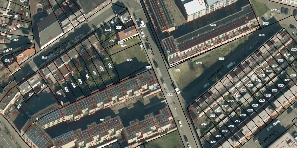 Het perceel waarop Havenstraat 12 staat heeft een oppervlakte van 3557 m². Dit is een zeer groot perceel. De perceeloppervlakte wordt geregistreerd door het Kadaster. Gedetailleerde informatie over de maten van dit perceel kunt u vinden in het rapport Kadastrale kaart met maatvoering van Havenstraat 12.