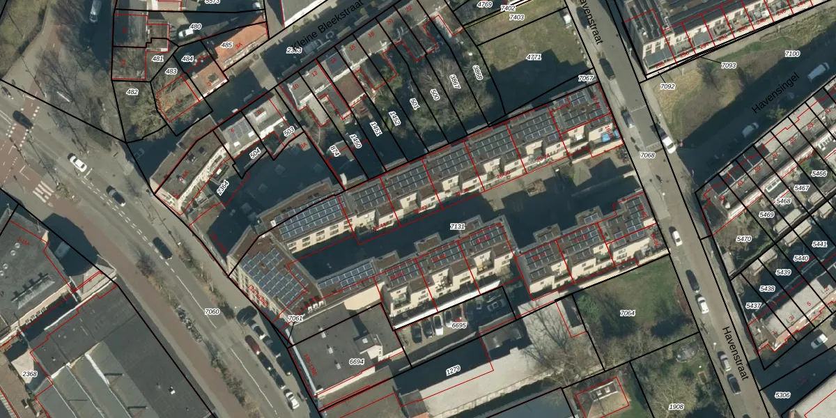 Het perceel waarop Havenstraat 40 staat heeft een oppervlakte van 3557 m². Dit is een zeer groot perceel. De perceeloppervlakte wordt geregistreerd door het Kadaster. Gedetailleerde informatie over de maten van dit perceel kunt u vinden in het rapport Kadastrale kaart met maatvoering van Havenstraat 40.