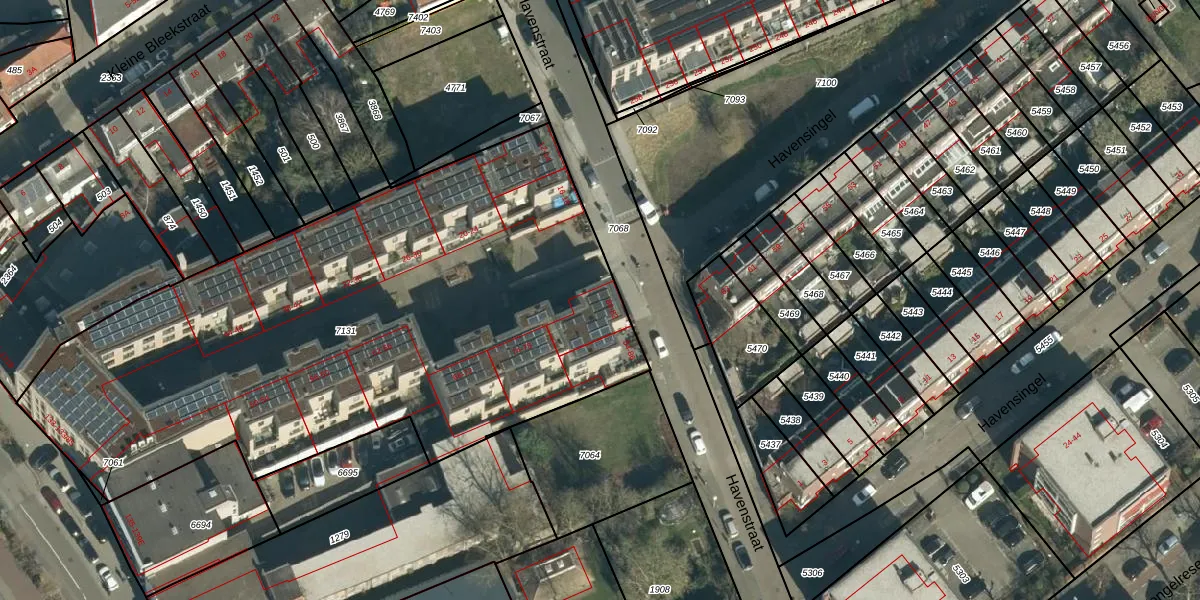 Het perceel waarop Havenstraat 80 staat heeft een oppervlakte van 3557 m². Dit is een zeer groot perceel. De perceeloppervlakte wordt geregistreerd door het Kadaster. Gedetailleerde informatie over de maten van dit perceel kunt u vinden in het rapport Kadastrale kaart met maatvoering van Havenstraat 80.