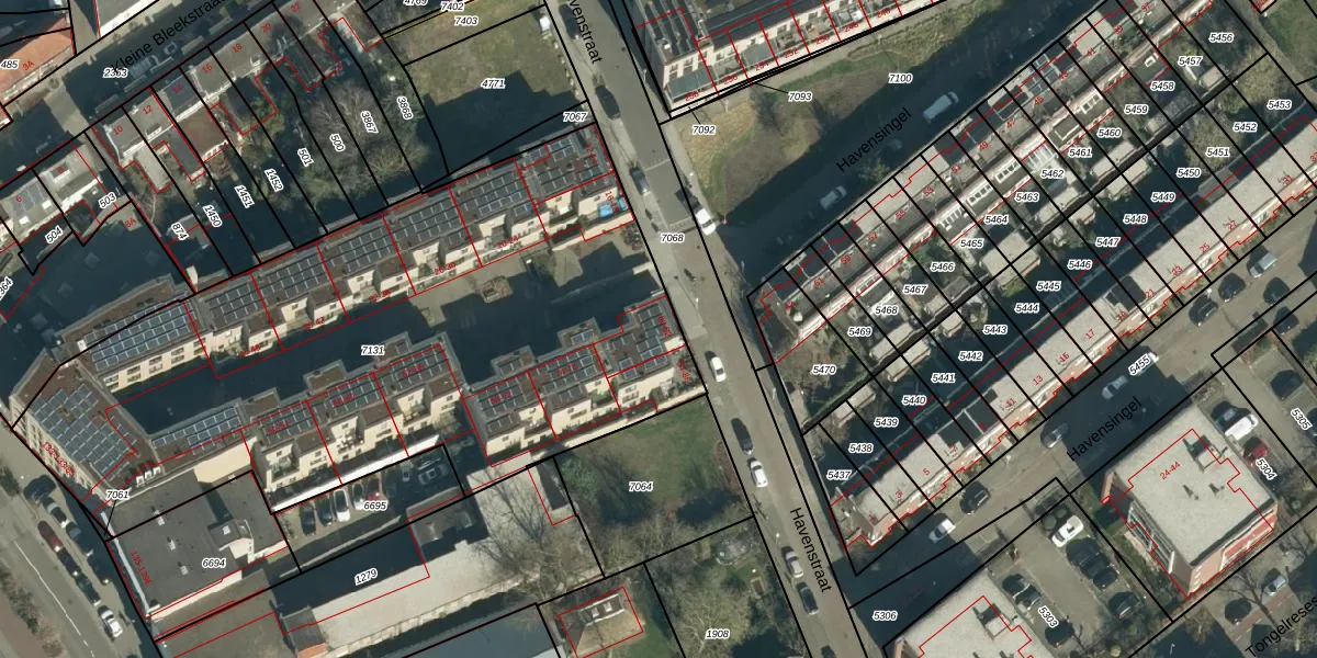 Het perceel waarop Havenstraat 82 staat heeft een oppervlakte van 3557 m². Dit is een zeer groot perceel. De perceeloppervlakte wordt geregistreerd door het Kadaster. Gedetailleerde informatie over de maten van dit perceel kunt u vinden in het rapport Kadastrale kaart met maatvoering van Havenstraat 82.