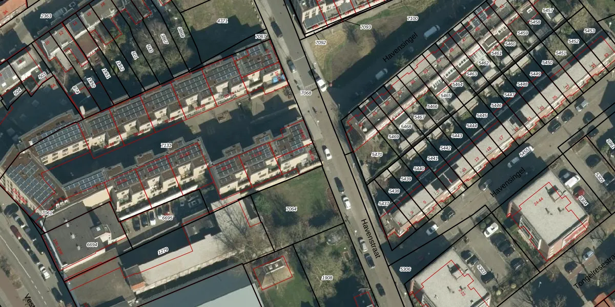 Het perceel waarop Havenstraat 84 staat heeft een oppervlakte van 3557 m². Dit is een zeer groot perceel. De perceeloppervlakte wordt geregistreerd door het Kadaster. Gedetailleerde informatie over de maten van dit perceel kunt u vinden in het rapport Kadastrale kaart met maatvoering van Havenstraat 84.
