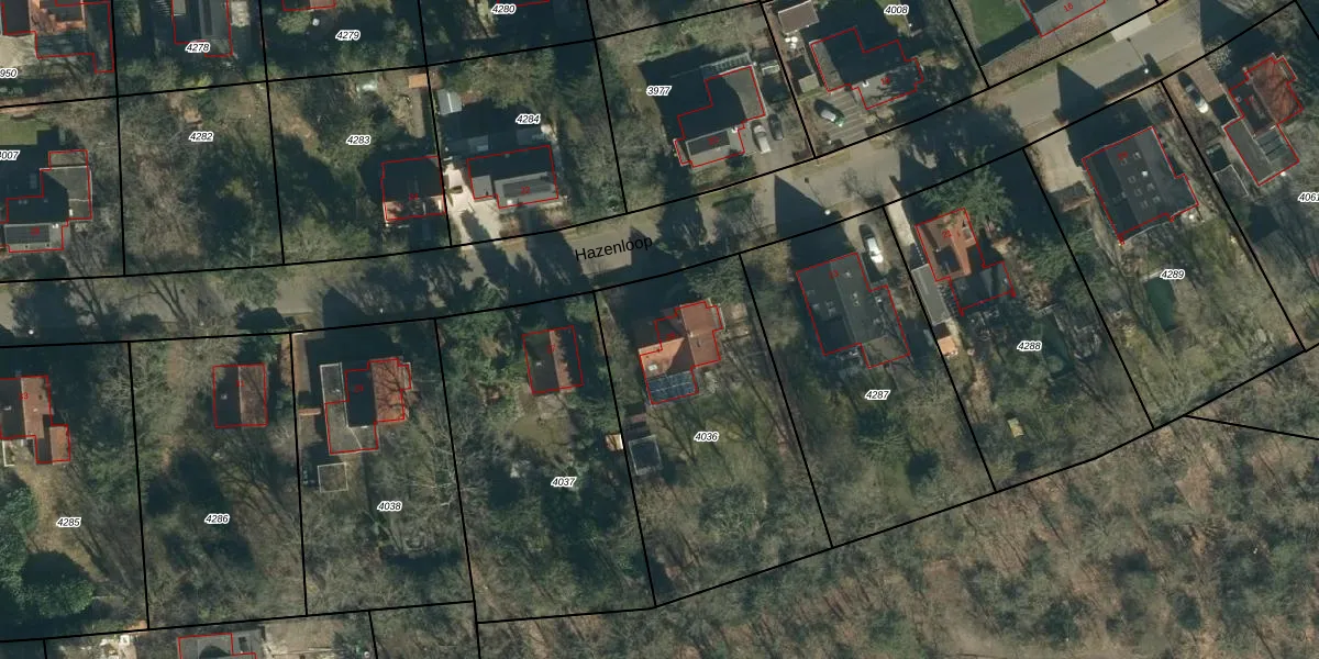 Hazenloop 25 is gelegen op kadastraal perceel STM00F4036. Deze kadastrale aanduiding is uniek en wordt gebruikt door het Kadaster om eigendomsrechten en andere zakelijke rechten vast te leggen. Het perceel maakt onderdeel uit van de kadastrale gemeente Stratum.