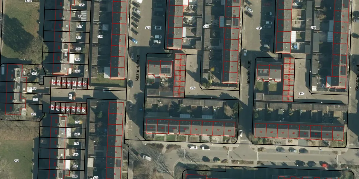 Het perceel waarop Hebronstraat 1-G02 staat heeft een oppervlakte van 3863 m². Dit is een zeer groot perceel. De perceeloppervlakte wordt geregistreerd door het Kadaster. Gedetailleerde informatie over de maten van dit perceel kunt u vinden in het rapport Kadastrale kaart met maatvoering van Hebronstraat 1-G02.