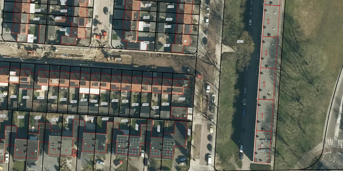Gebruik de zoekbalk of klik op een perceel voor informatie over de adressen binnen dit perceel.