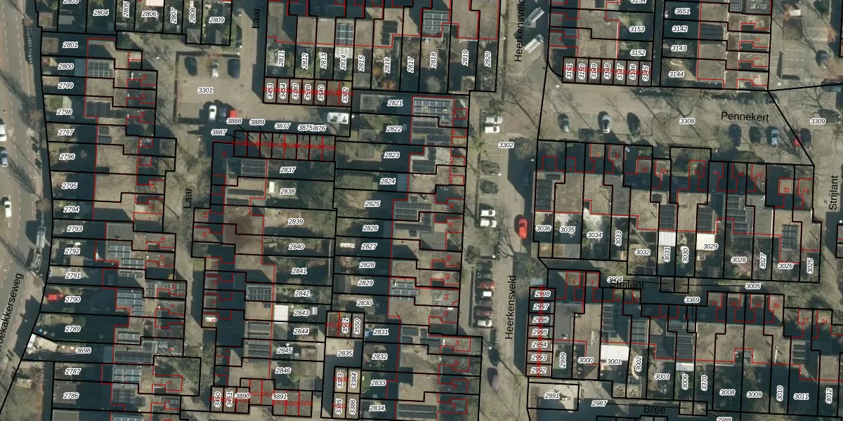 Gebruik de zoekbalk of klik op een perceel voor informatie over de adressen binnen dit perceel.