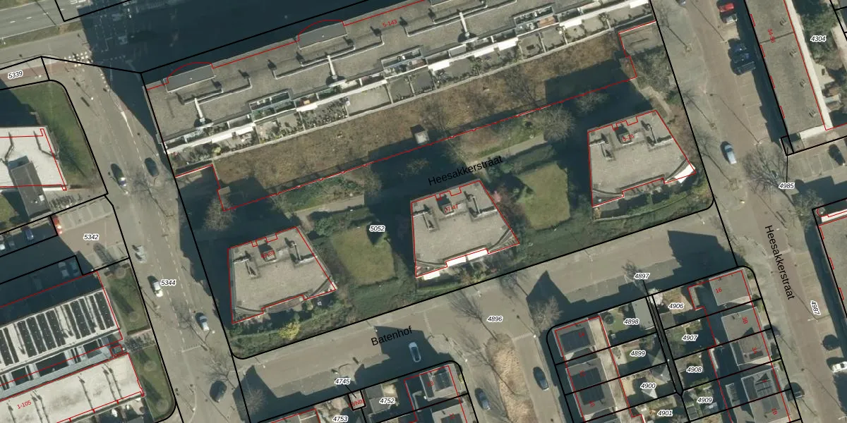 Heesakkerstraat 47 is gelegen op kadastraal perceel STR03C5052. Deze kadastrale aanduiding is uniek en wordt gebruikt door het Kadaster om eigendomsrechten en andere zakelijke rechten vast te leggen. Het perceel maakt onderdeel uit van de kadastrale gemeente Strijp.