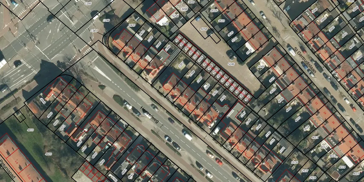 Gebruik de zoekbalk of klik op een perceel voor informatie over de adressen binnen dit perceel.