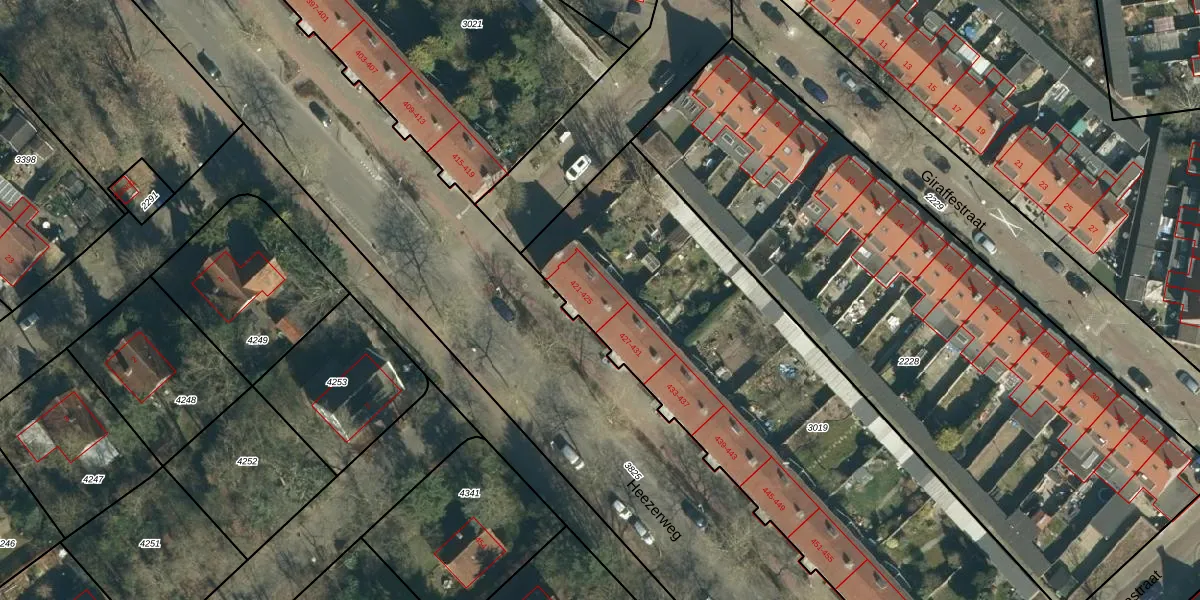 Heezerweg 423 is gelegen op kadastraal perceel STM00F3019. Deze kadastrale aanduiding is uniek en wordt gebruikt door het Kadaster om eigendomsrechten en andere zakelijke rechten vast te leggen. Het perceel maakt onderdeel uit van de kadastrale gemeente Stratum.