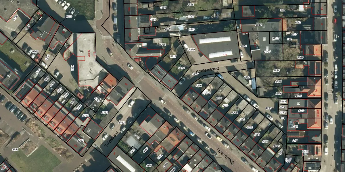Gebruik de zoekbalk of klik op een perceel voor informatie over de adressen binnen dit perceel.