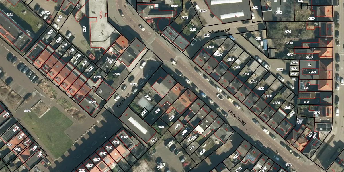 Het perceel waarop Heezerweg 74 staat heeft een oppervlakte van 365 m². Dit is een groot perceel. De perceeloppervlakte wordt geregistreerd door het Kadaster. Gedetailleerde informatie over de maten van dit perceel kunt u vinden in het rapport Kadastrale kaart met maatvoering van Heezerweg 74.