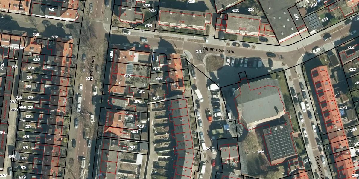 Gebruik de zoekbalk of klik op een perceel voor informatie over de adressen binnen dit perceel.
