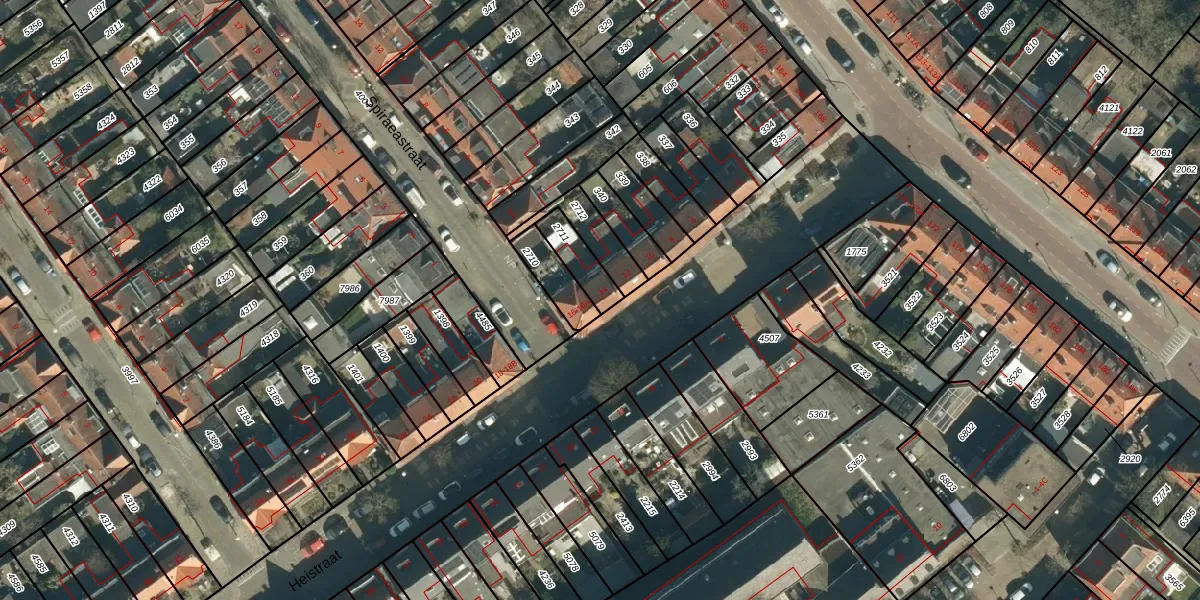 Het perceel waarop Heistraat 14 staat heeft een oppervlakte van 92 m². Dit is een klein perceel. De perceeloppervlakte wordt geregistreerd door het Kadaster. Gedetailleerde informatie over de maten van dit perceel kunt u vinden in het rapport Kadastrale kaart met maatvoering van Heistraat 14.