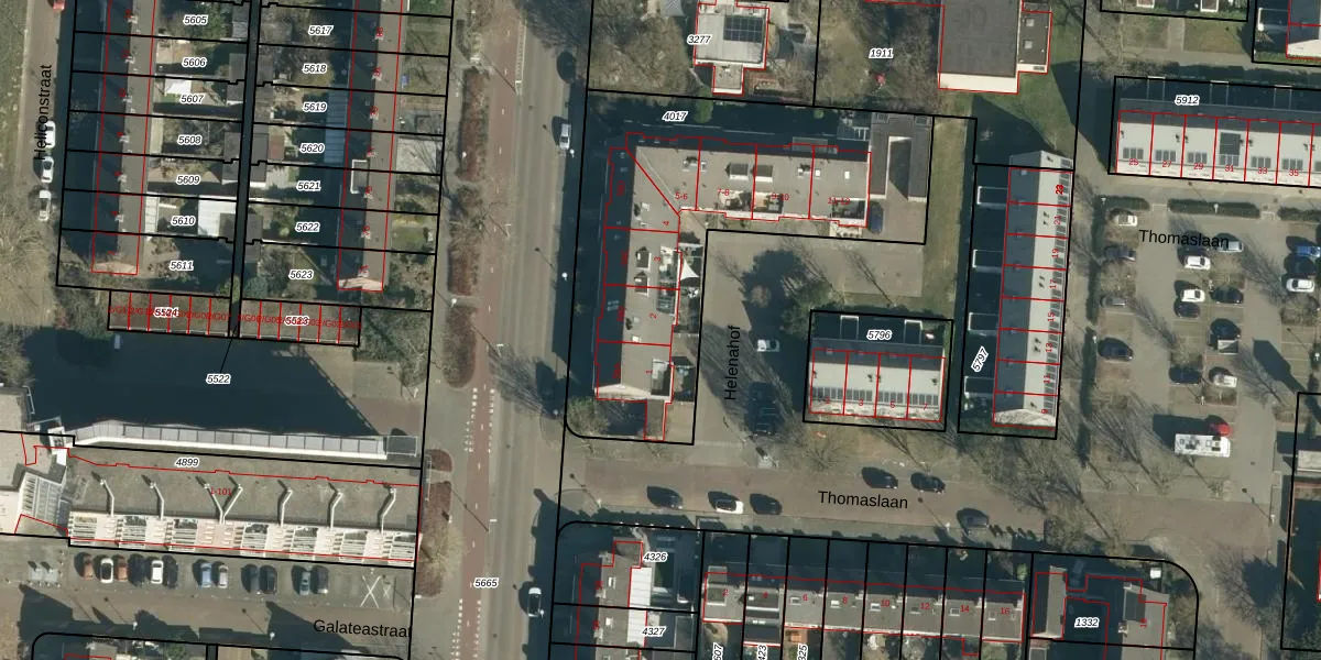 Het perceel waarop Helenahof 2 staat heeft een oppervlakte van 1639 m². Dit is een zeer groot perceel. De perceeloppervlakte wordt geregistreerd door het Kadaster. Gedetailleerde informatie over de maten van dit perceel kunt u vinden in het rapport Kadastrale kaart met maatvoering van Helenahof 2.