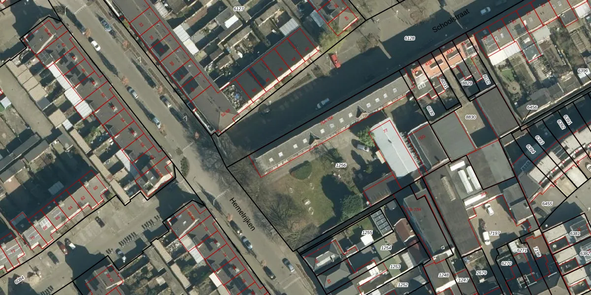 Het perceel waarop Hemelrijken 75-B staat heeft een oppervlakte van 2289 m². Dit is een zeer groot perceel. De perceeloppervlakte wordt geregistreerd door het Kadaster. Gedetailleerde informatie over de maten van dit perceel kunt u vinden in het rapport Kadastrale kaart met maatvoering van Hemelrijken 75-B.