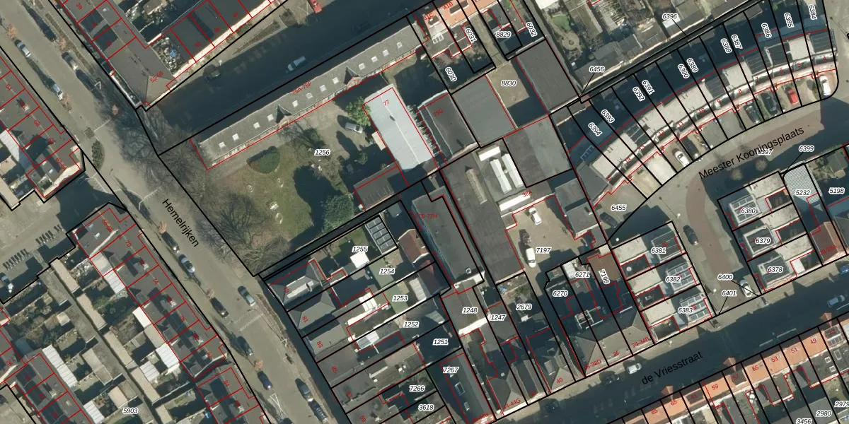 Het perceel waarop Hemelrijken 77-D staat heeft een oppervlakte van 529 m². Dit is een groot perceel. De perceeloppervlakte wordt geregistreerd door het Kadaster. Gedetailleerde informatie over de maten van dit perceel kunt u vinden in het rapport Kadastrale kaart met maatvoering van Hemelrijken 77-D.