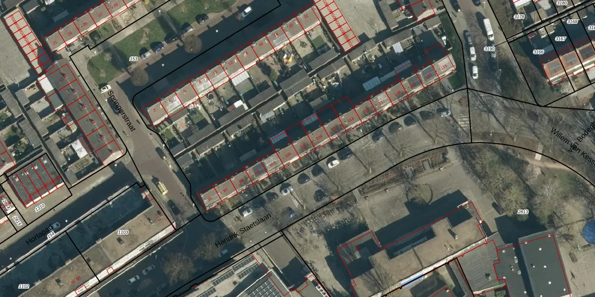 Hendrik Staetslaan 107 is gelegen op kadastraal perceel WSL01P160. Deze kadastrale aanduiding is uniek en wordt gebruikt door het Kadaster om eigendomsrechten en andere zakelijke rechten vast te leggen. Het perceel maakt onderdeel uit van de kadastrale gemeente Woensel.