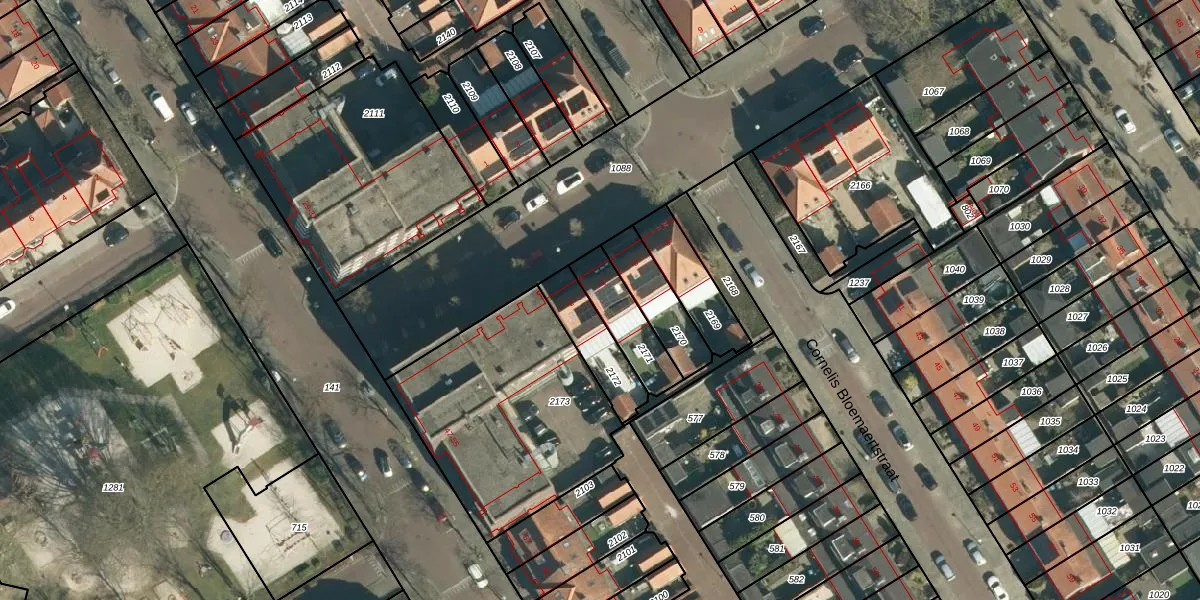 Gebruik de zoekbalk of klik op een perceel voor informatie over de adressen binnen dit perceel.
