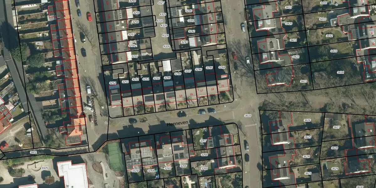 Het perceel waarop Henneven 15 staat heeft een oppervlakte van 171 m². Dit is een middelgroot perceel. De perceeloppervlakte wordt geregistreerd door het Kadaster. Gedetailleerde informatie over de maten van dit perceel kunt u vinden in het rapport Kadastrale kaart met maatvoering van Henneven 15.