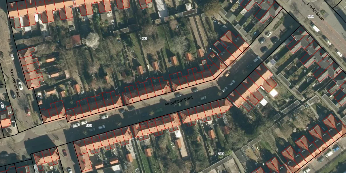 Het perceel waarop Henriëttestraat 20 staat heeft een oppervlakte van 9480 m². Dit is een zeer groot perceel. De perceeloppervlakte wordt geregistreerd door het Kadaster. Gedetailleerde informatie over de maten van dit perceel kunt u vinden in het rapport Kadastrale kaart met maatvoering van Henriëttestraat 20.