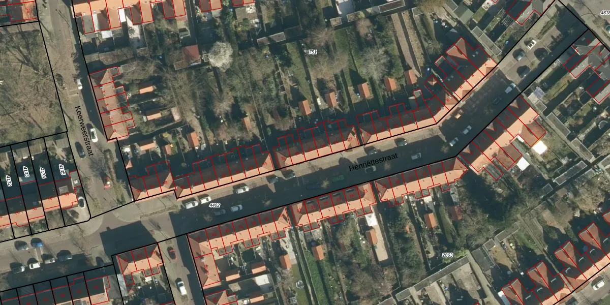 Het perceel waarop Henriëttestraat 28 staat heeft een oppervlakte van 9480 m². Dit is een zeer groot perceel. De perceeloppervlakte wordt geregistreerd door het Kadaster. Gedetailleerde informatie over de maten van dit perceel kunt u vinden in het rapport Kadastrale kaart met maatvoering van Henriëttestraat 28.