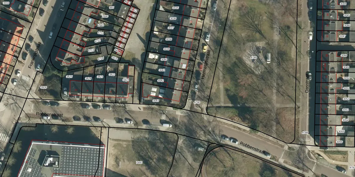 Gebruik de zoekbalk of klik op een perceel voor informatie over de adressen binnen dit perceel.
