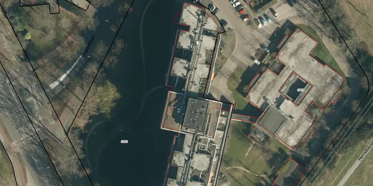 Het perceel waarop Herodotusplein 103 staat heeft een oppervlakte van 8875 m². Dit is een zeer groot perceel. De perceeloppervlakte wordt geregistreerd door het Kadaster. Gedetailleerde informatie over de maten van dit perceel kunt u vinden in het rapport Kadastrale kaart met maatvoering van Herodotusplein 103.