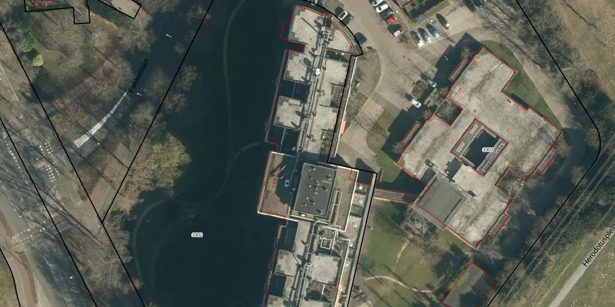 Het perceel waarop Herodotusplein 136 staat heeft een oppervlakte van 8875 m². Dit is een zeer groot perceel. De perceeloppervlakte wordt geregistreerd door het Kadaster. Gedetailleerde informatie over de maten van dit perceel kunt u vinden in het rapport Kadastrale kaart met maatvoering van Herodotusplein 136.