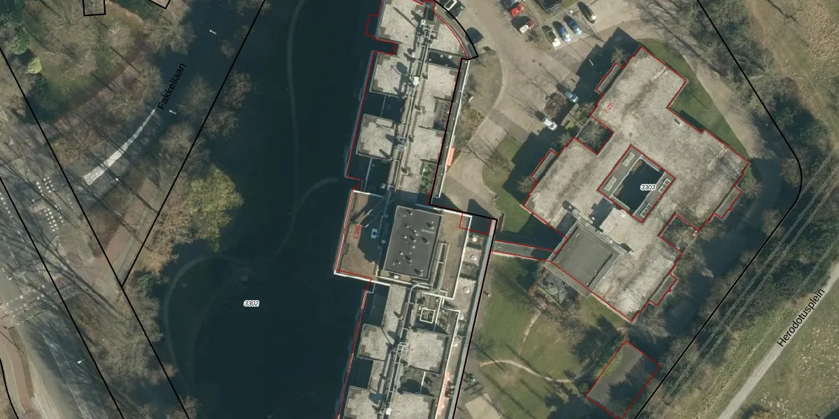 Het perceel waarop Herodotusplein 195 staat heeft een oppervlakte van 8875 m². Dit is een zeer groot perceel. De perceeloppervlakte wordt geregistreerd door het Kadaster. Gedetailleerde informatie over de maten van dit perceel kunt u vinden in het rapport Kadastrale kaart met maatvoering van Herodotusplein 195.