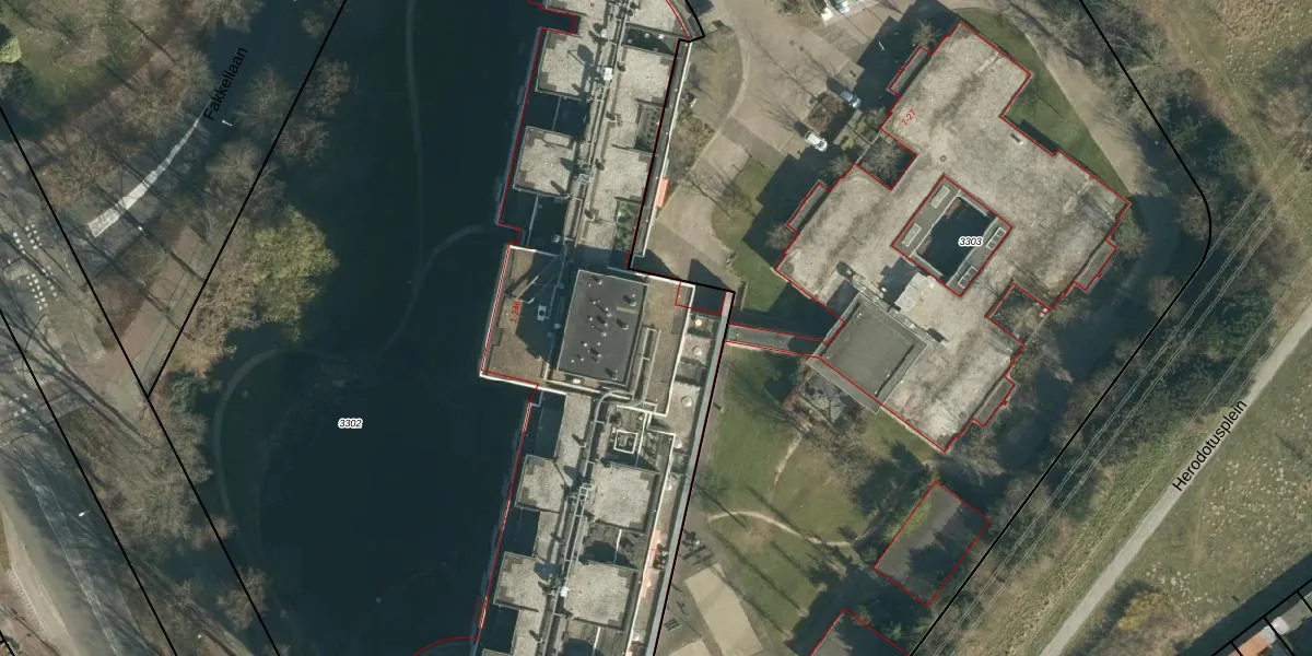 Het perceel waarop Herodotusplein 2-G staat heeft een oppervlakte van 8875 m². Dit is een zeer groot perceel. De perceeloppervlakte wordt geregistreerd door het Kadaster. Gedetailleerde informatie over de maten van dit perceel kunt u vinden in het rapport Kadastrale kaart met maatvoering van Herodotusplein 2-G.