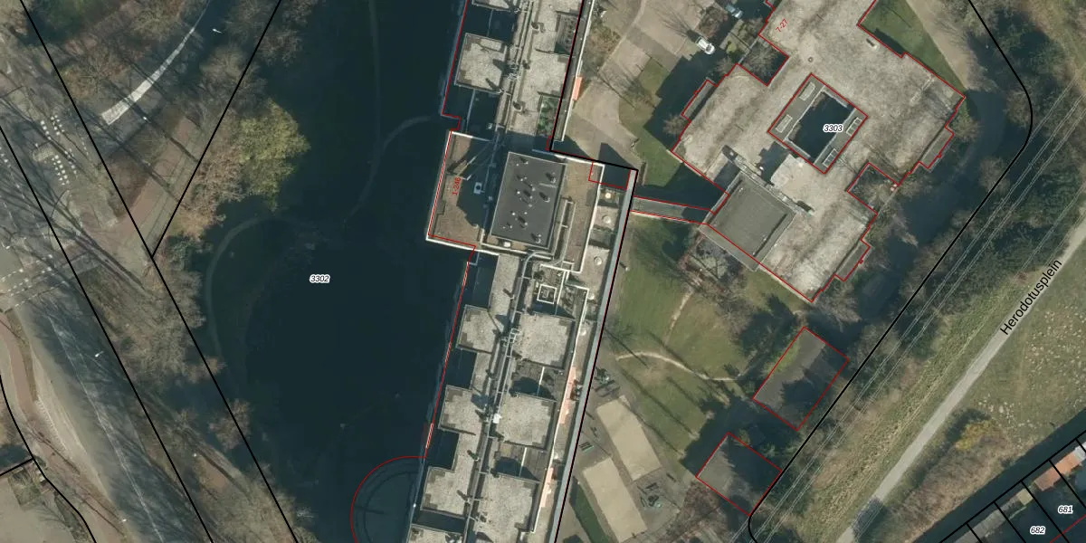 Het perceel waarop Herodotusplein 236 staat heeft een oppervlakte van 8875 m². Dit is een zeer groot perceel. De perceeloppervlakte wordt geregistreerd door het Kadaster. Gedetailleerde informatie over de maten van dit perceel kunt u vinden in het rapport Kadastrale kaart met maatvoering van Herodotusplein 236.