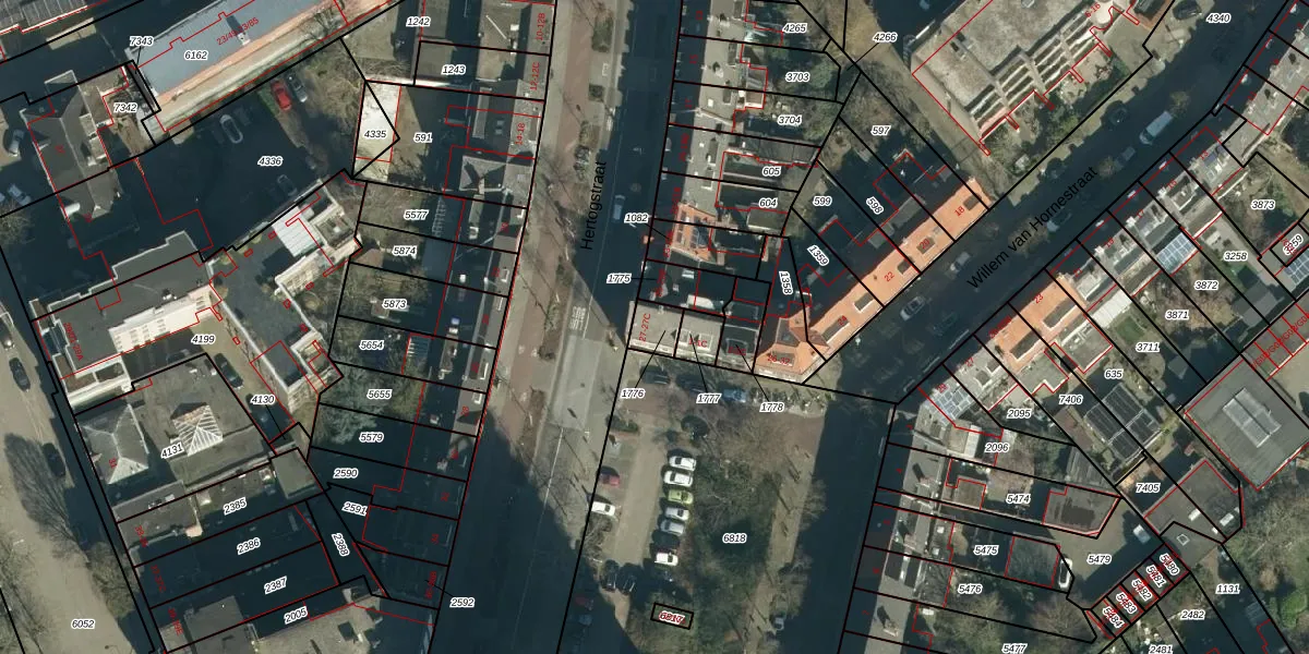 Het perceel waarop Hertogstraat 27-B staat heeft een oppervlakte van 59 m². Dit is een klein perceel. De perceeloppervlakte wordt geregistreerd door het Kadaster. Gedetailleerde informatie over de maten van dit perceel kunt u vinden in het rapport Kadastrale kaart met maatvoering van Hertogstraat 27-B.