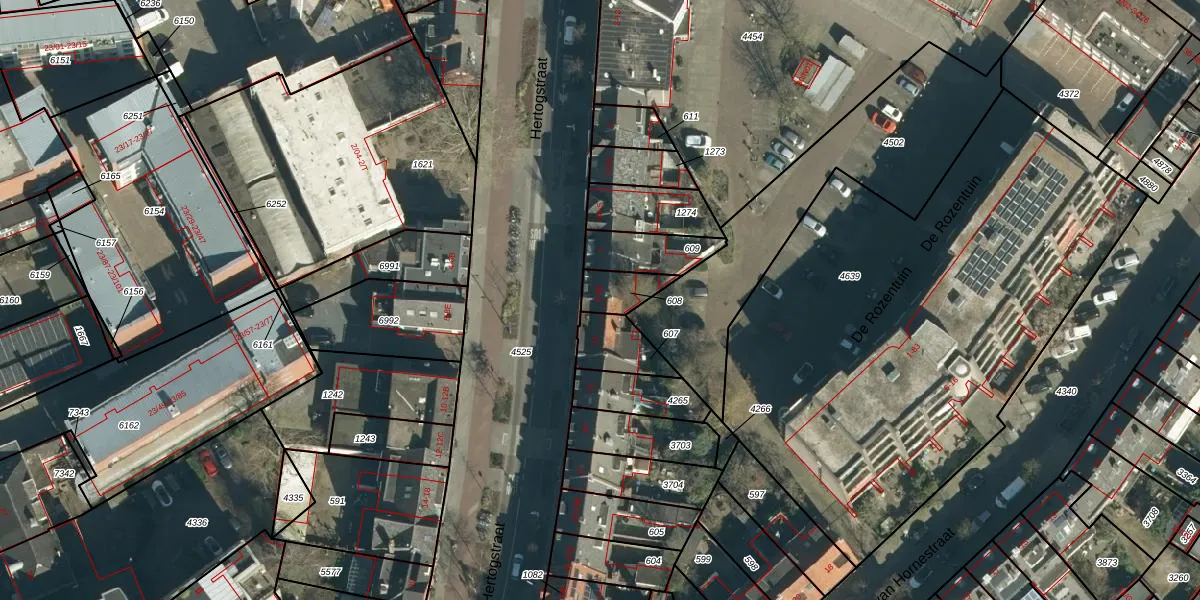 Het perceel waarop Hertogstraat 9 staat heeft een oppervlakte van 83 m². Dit is een klein perceel. De perceeloppervlakte wordt geregistreerd door het Kadaster. Gedetailleerde informatie over de maten van dit perceel kunt u vinden in het rapport Kadastrale kaart met maatvoering van Hertogstraat 9.