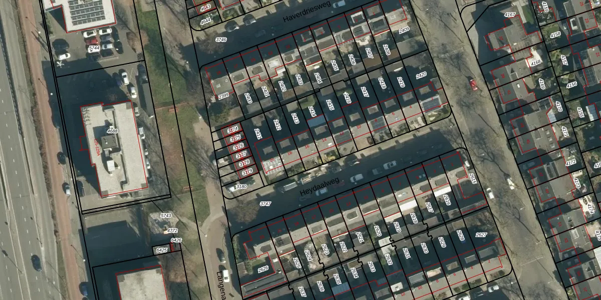 Gebruik de zoekbalk of klik op een perceel voor informatie over de adressen binnen dit perceel.