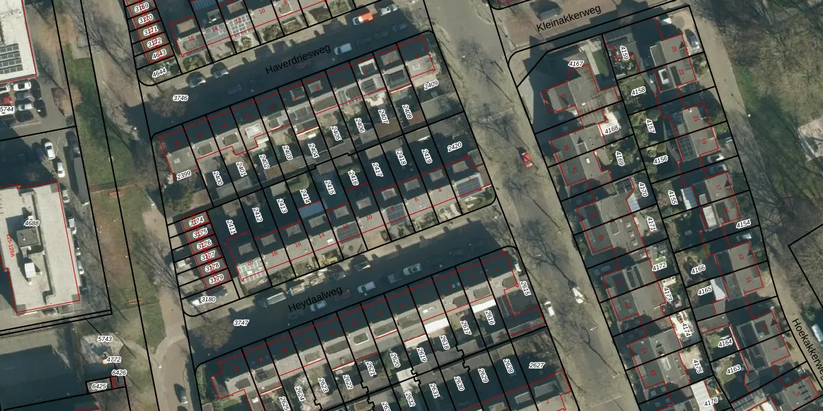 Gebruik de zoekbalk of klik op een perceel voor informatie over de adressen binnen dit perceel.