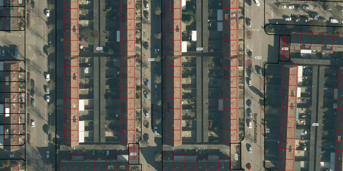Hobokenlaan 12 is gelegen op kadastraal perceel WSL01M1605. Deze kadastrale aanduiding is uniek en wordt gebruikt door het Kadaster om eigendomsrechten en andere zakelijke rechten vast te leggen. Het perceel maakt onderdeel uit van de kadastrale gemeente Woensel.