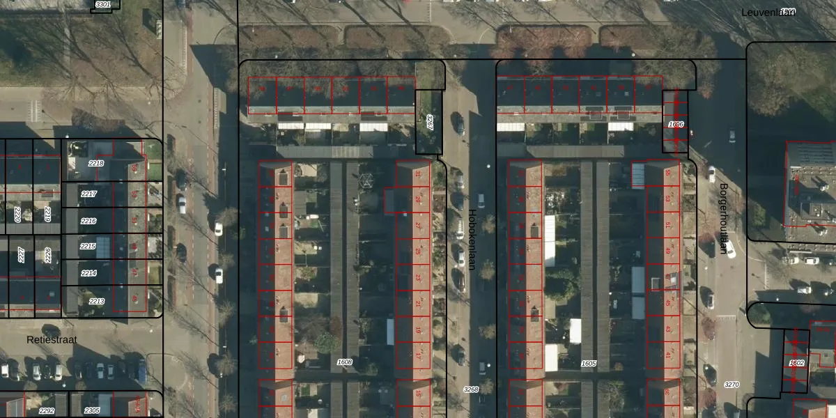 Hobokenlaan 29 is gelegen op kadastraal perceel WSL01M1608. Deze kadastrale aanduiding is uniek en wordt gebruikt door het Kadaster om eigendomsrechten en andere zakelijke rechten vast te leggen. Het perceel maakt onderdeel uit van de kadastrale gemeente Woensel.
