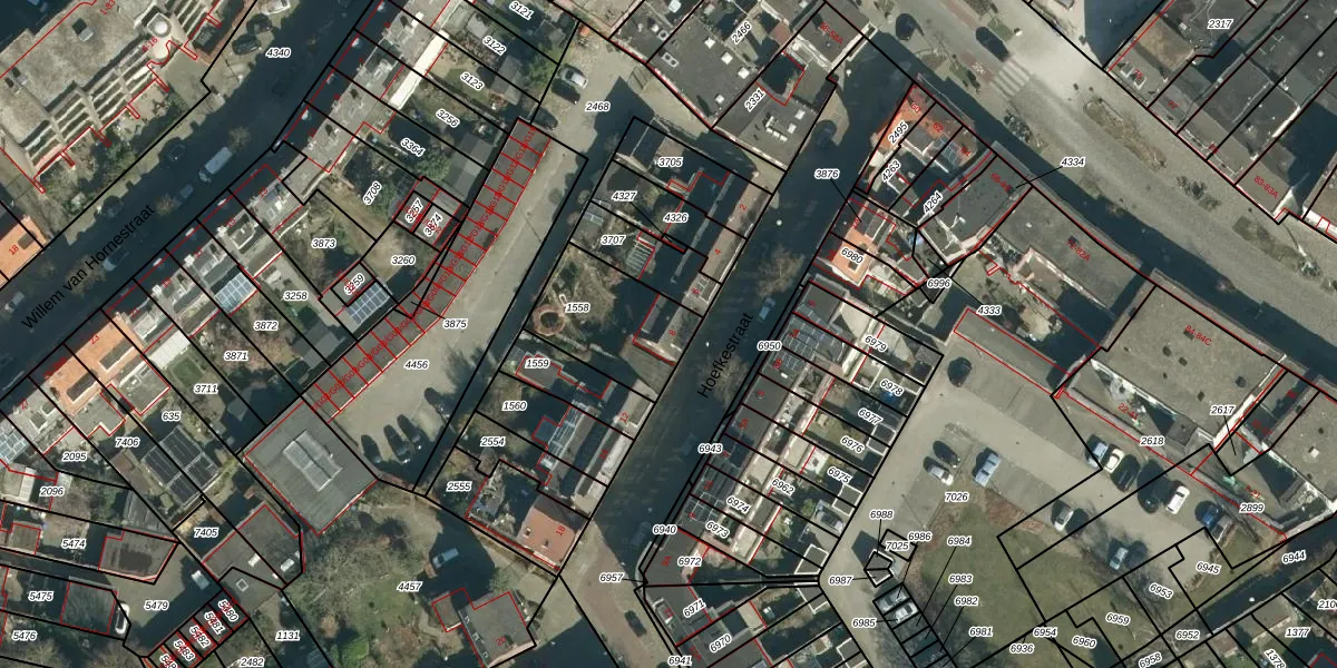Gebruik de zoekbalk of klik op een perceel voor informatie over de adressen binnen dit perceel.