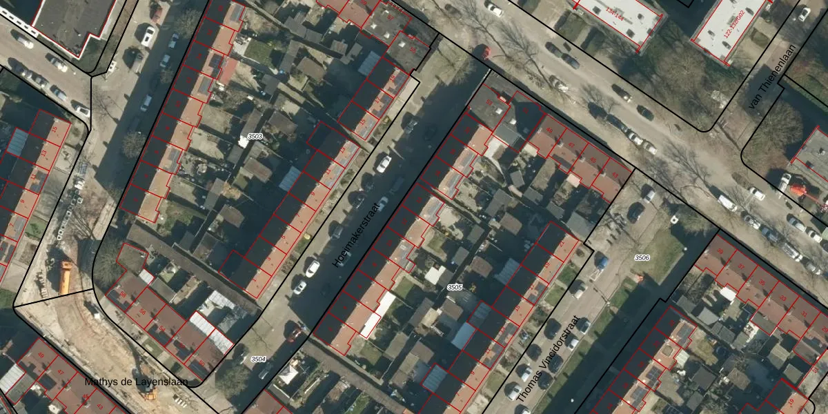 Hoeimakerstraat 14 is gelegen op kadastraal perceel WSL01G3505. Deze kadastrale aanduiding is uniek en wordt gebruikt door het Kadaster om eigendomsrechten en andere zakelijke rechten vast te leggen. Het perceel maakt onderdeel uit van de kadastrale gemeente Woensel.