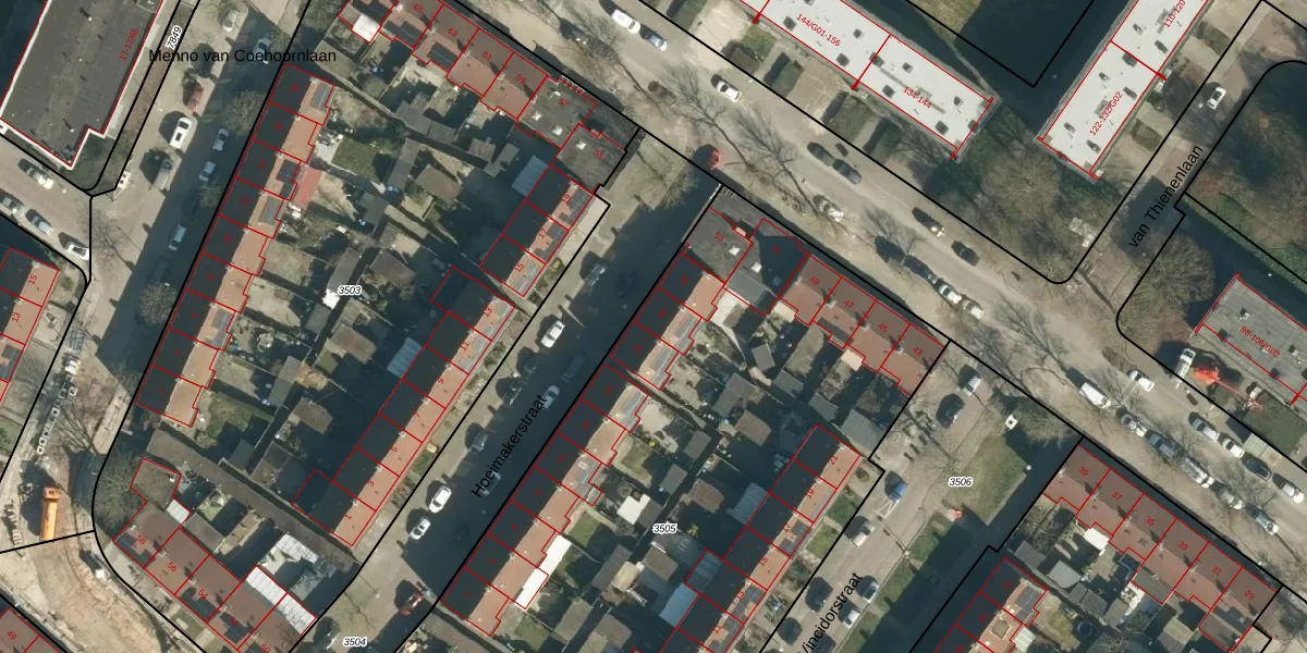 Het perceel waarop Hoeimakerstraat 18 staat heeft een oppervlakte van 4923 m². Dit is een zeer groot perceel. De perceeloppervlakte wordt geregistreerd door het Kadaster. Gedetailleerde informatie over de maten van dit perceel kunt u vinden in het rapport Kadastrale kaart met maatvoering van Hoeimakerstraat 18.
