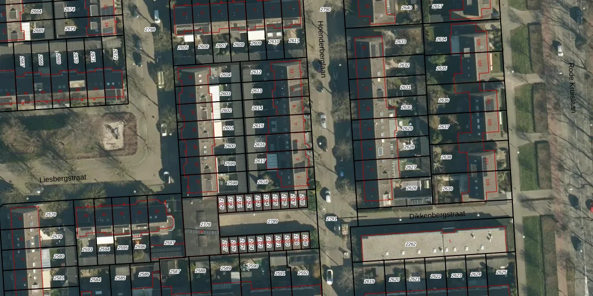 Hoenderberglaan 5 is gelegen op kadastraal perceel WSL01W2616. Deze kadastrale aanduiding is uniek en wordt gebruikt door het Kadaster om eigendomsrechten en andere zakelijke rechten vast te leggen. Het perceel maakt onderdeel uit van de kadastrale gemeente Woensel.